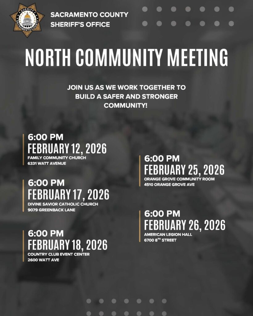 Looking ahead, the North Division of the Sacramento County Sheriff’s Office is hosting five community meetings in February. While meetings are scheduled throughout the North Area, a local meeting will be held right here in Rio Linda on February 26th.