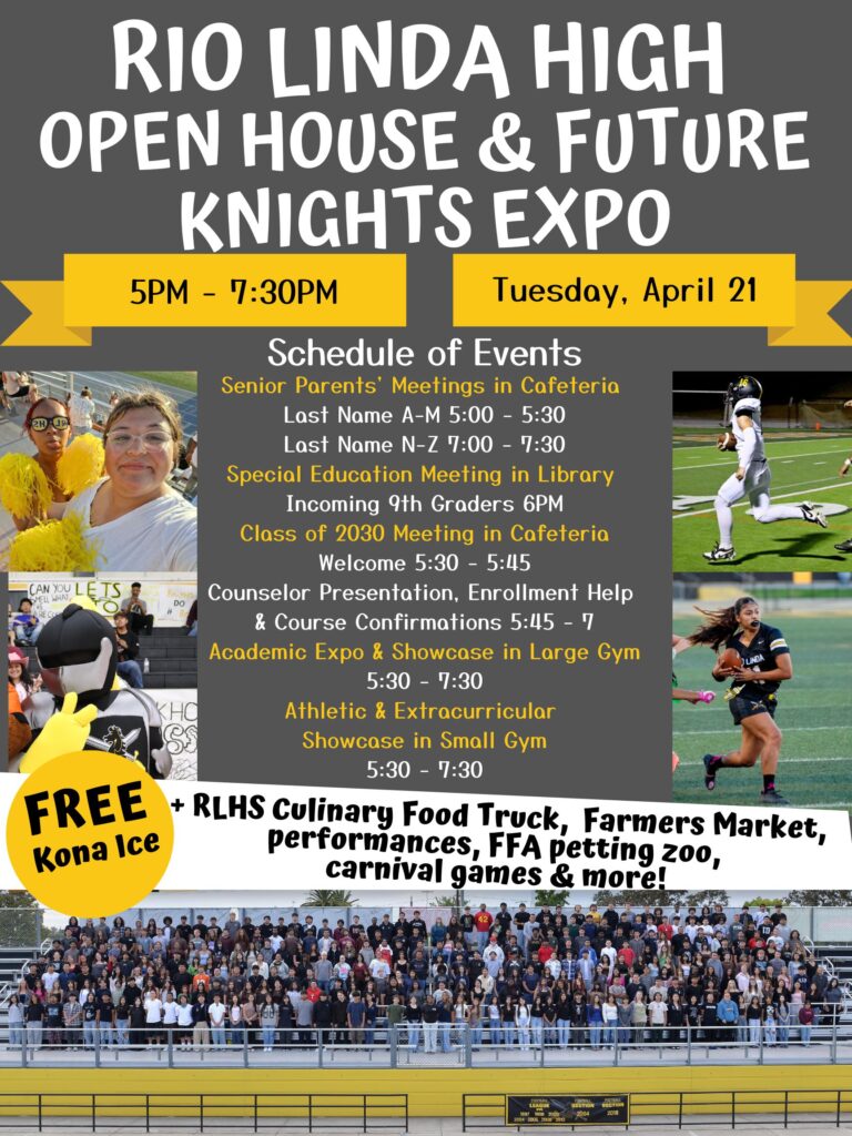 RIO LINDA, CA — The hallways of Rio Linda High School are preparing to buzz with more than just the usual school-day energy. On Tuesday, April 21, the campus will open its doors to current families and the community at large for the annual Open House & Future Knights Expo.